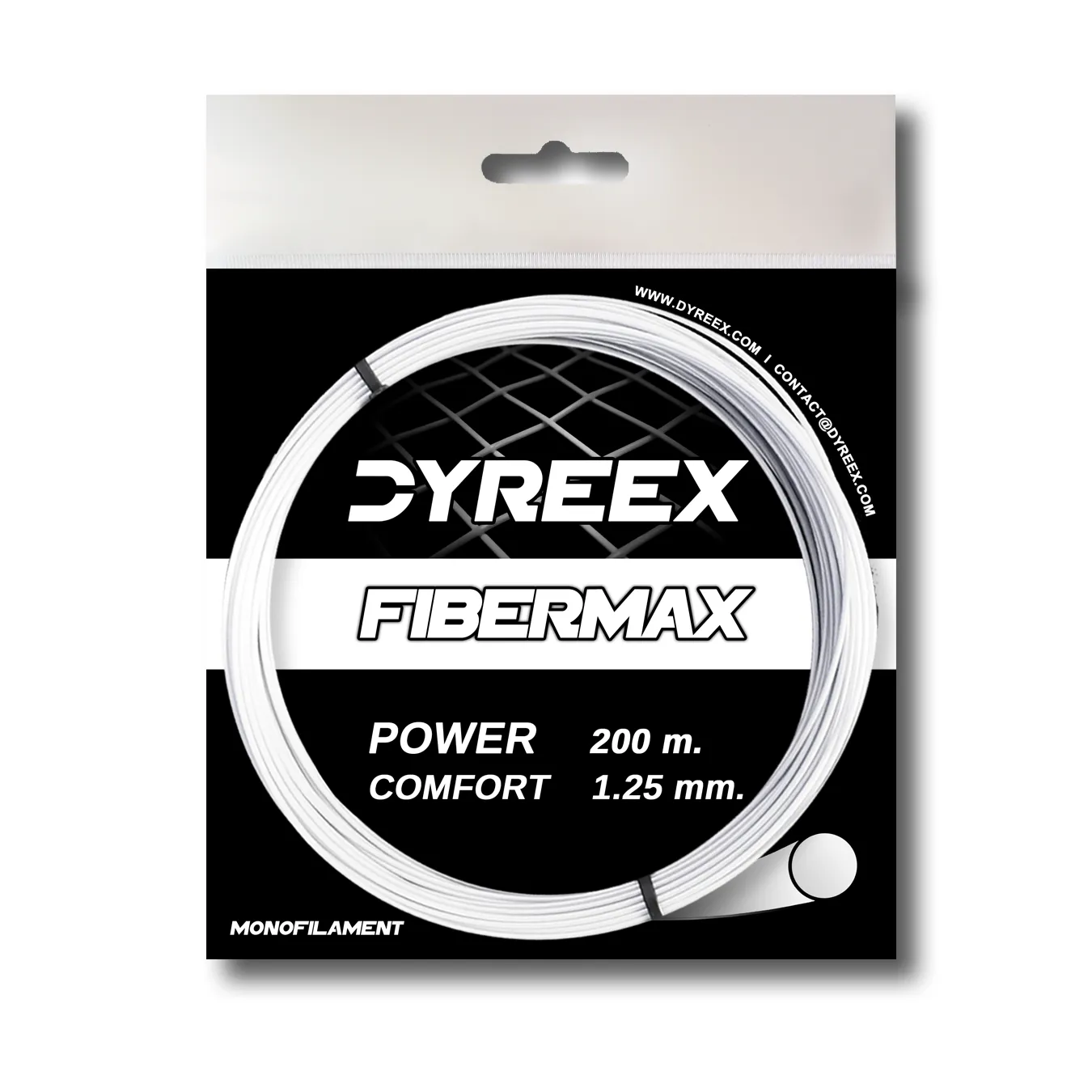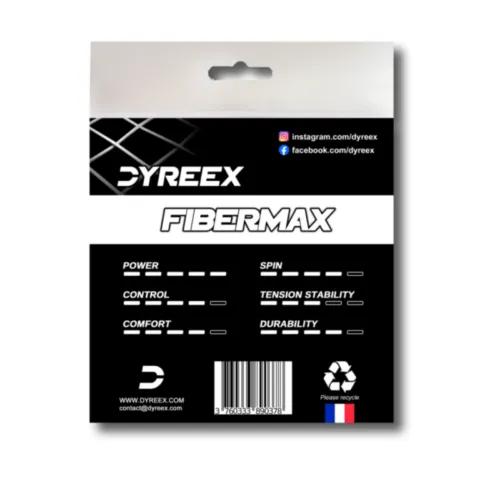 The Fibermax is a soft copolyester string made with the Supra Soft Technology. With this string, Dyreex has developed a unique material composition that drastically increases the elasticity and the flexibility. Offering a very good playability, a soft impact and an optimal comfort for a monofilament, the Fibermax has a great balance between control and power that will suit a wide range of players. An arm-friendly tennis string.