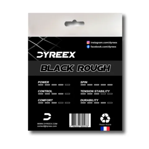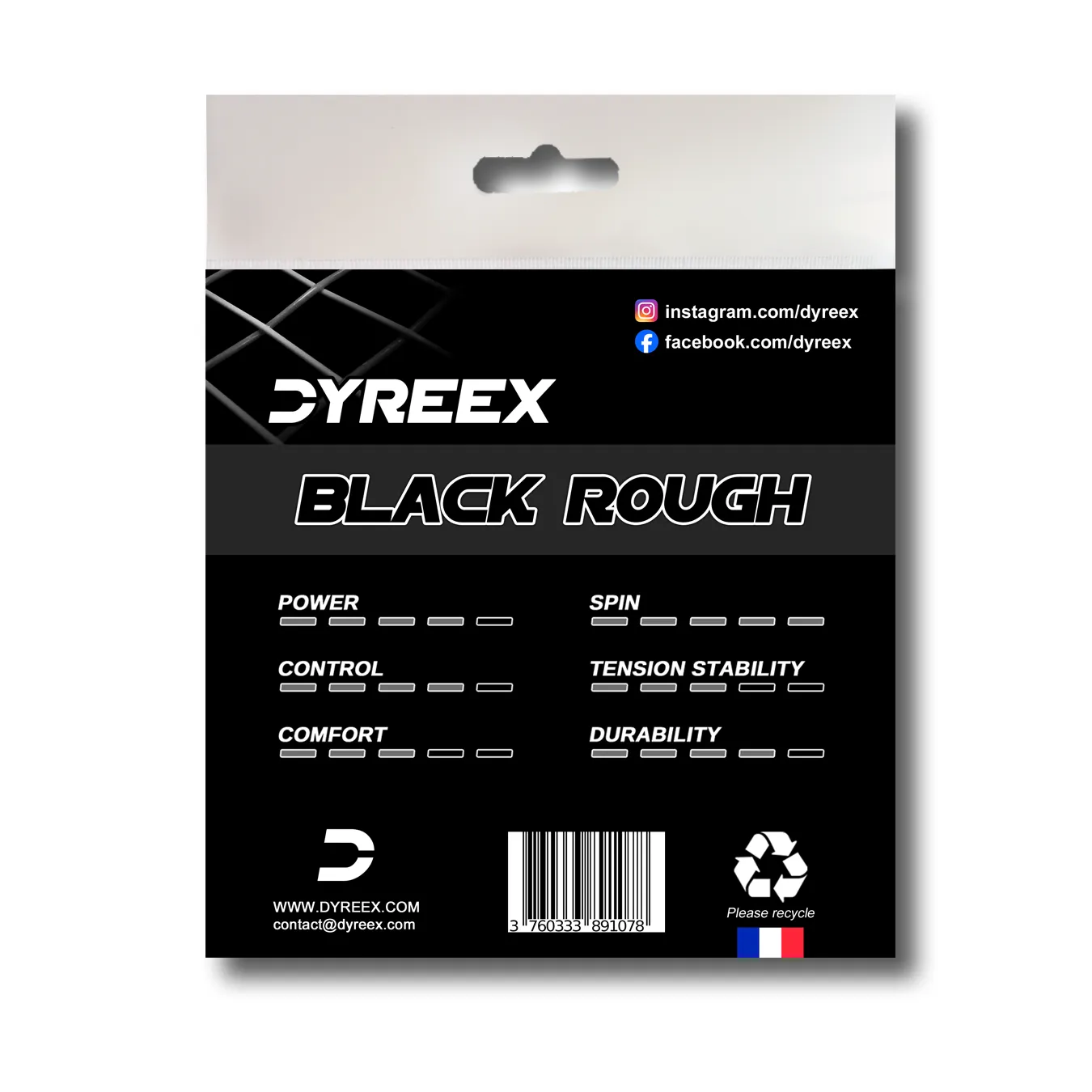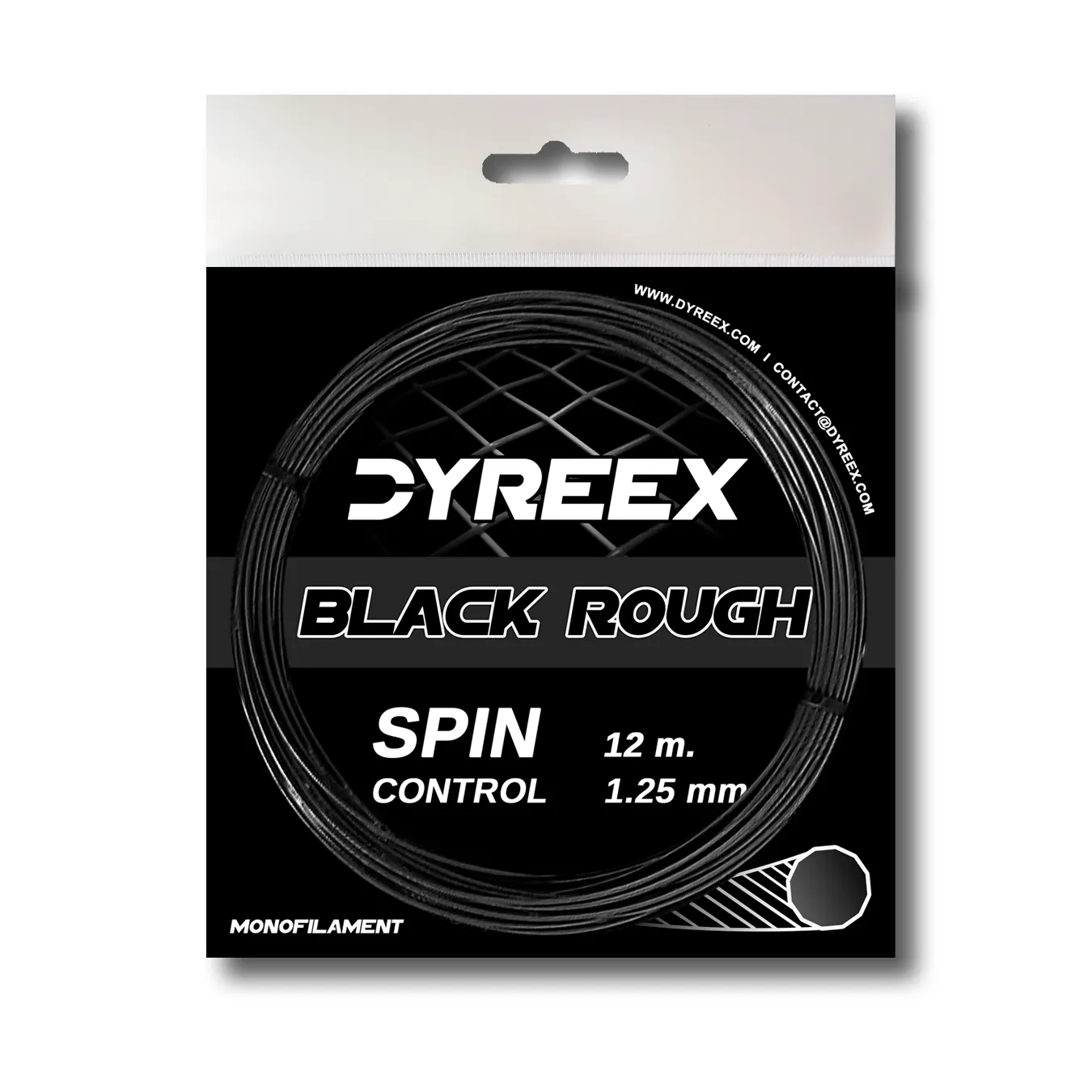 Dyreex Black Rough is a comfortably firm monofilament with exceptional playability and feel for a control string. The rough shape delivers exceptional bite. Best suited to big hitters in search of heavy spin and control along with above average comfort.
