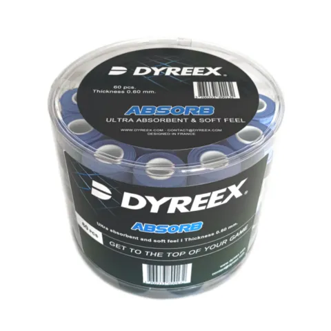 Il est ultra absorbant et convient donc aux joueurs qui transpirent beaucoup ou qui vivent dans des zones géographiques particulièrement humides. De plus, sa douceur vous assure un confort optimal. Le surgrip Absorb s'adapte aux raquettes standards et rallongées. Comprend 60 surgrips par boîte. Comprend un ruban de finition pour chaque surgrip.