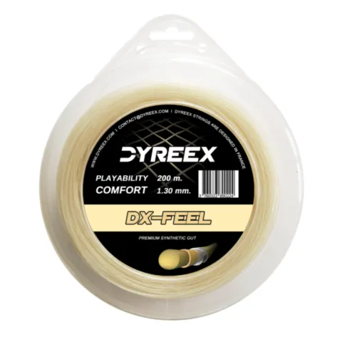 The Dx-Feel is a durable multifilament string that has a solid core synthetic gut and a nylon shell with high molecular density for increased durability. This combination allows the association of power and comfort. In addition, the DX-Feel has a coating with premium resin thermo-elastic in order to generate gut-like playability.