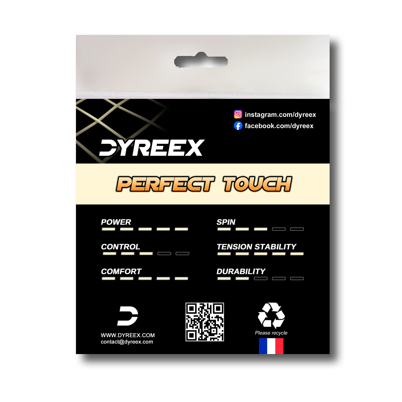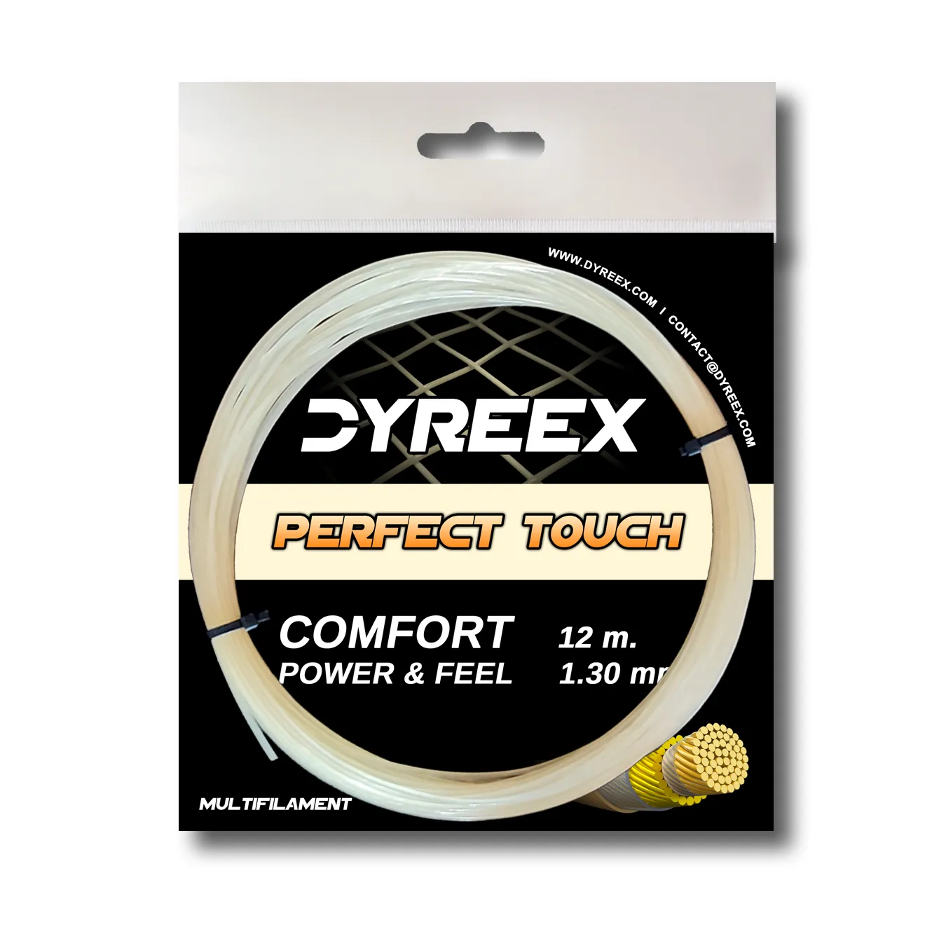 The Perfect Touch is a multifilament tennis string designed for ultimate gut-like playability. Each microfiber is impregnated with a polyurethane resin for optimal feel, comfort and playability. In addition, the Perfect Touch provides an excellent power while being arm friendly because its soft thermoplastic coating decreases the vibrations and so, the risk of tennis elbow. A great choice for players dealing with arm problems.