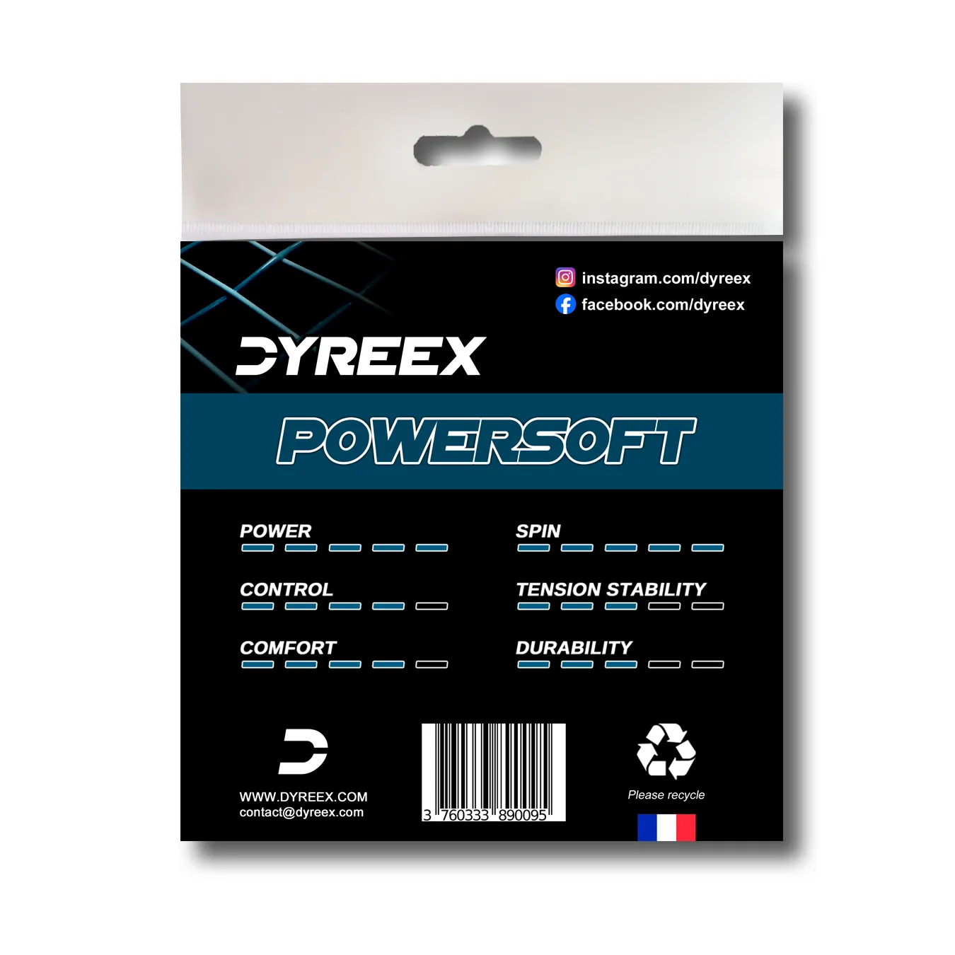 • Dyreex tennis string Powersoft 12 m. set - 1.22 mm. String that provided a very high level of comfort for a monofilament and this was achieved thanks to the very high elasticity of the string.