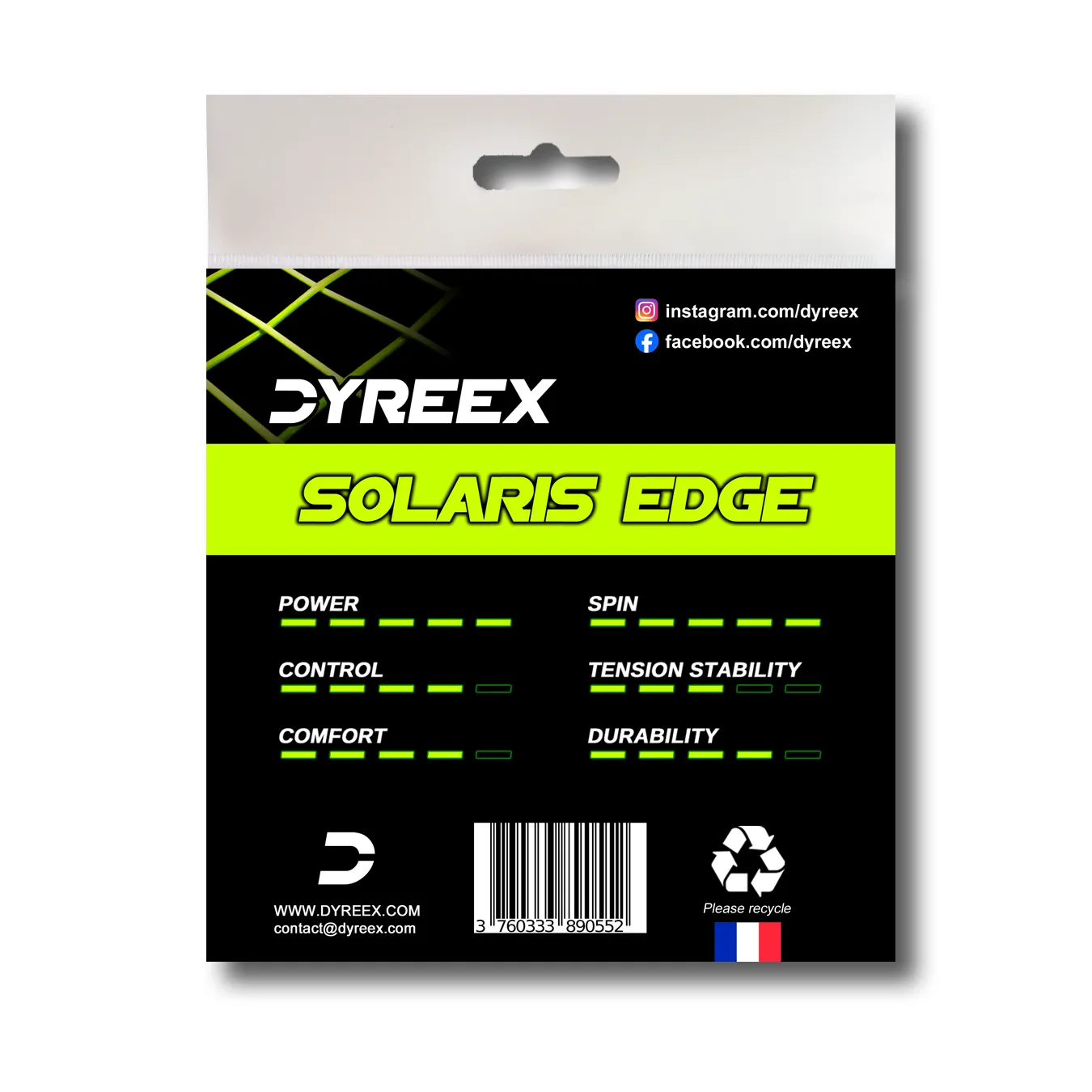 The Solaris Edge is a hexagonal copolyester made with our Supra Soft Technology! Offering a very good comfort for a monofilament, the Solaris Edge provides a great power and a lot of spin due to its hexagonal shape. The ultimate string for agressive players !