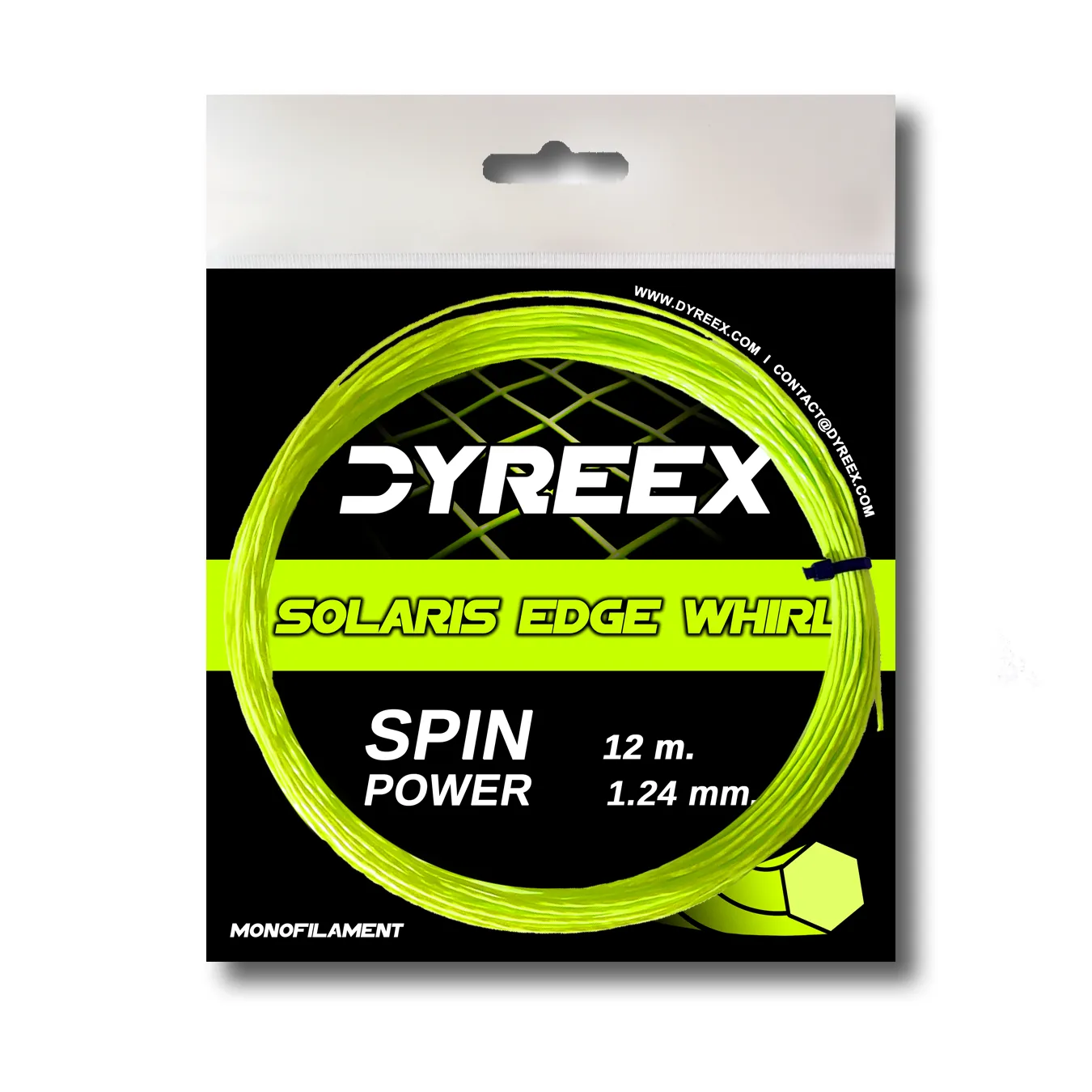 The Solaris Edge Whirl is a twisted hexagonal copolyester made with our Supra Soft Technology! Offering a very good comfort for a monofilament, the Solaris Spin provides a great power and a lot of spin due to its hexagonal shape. In addition, this twisted version offers even more spin and slightly more control on lift shots. A must have for aggressive players looking for a comfortable monofilament.